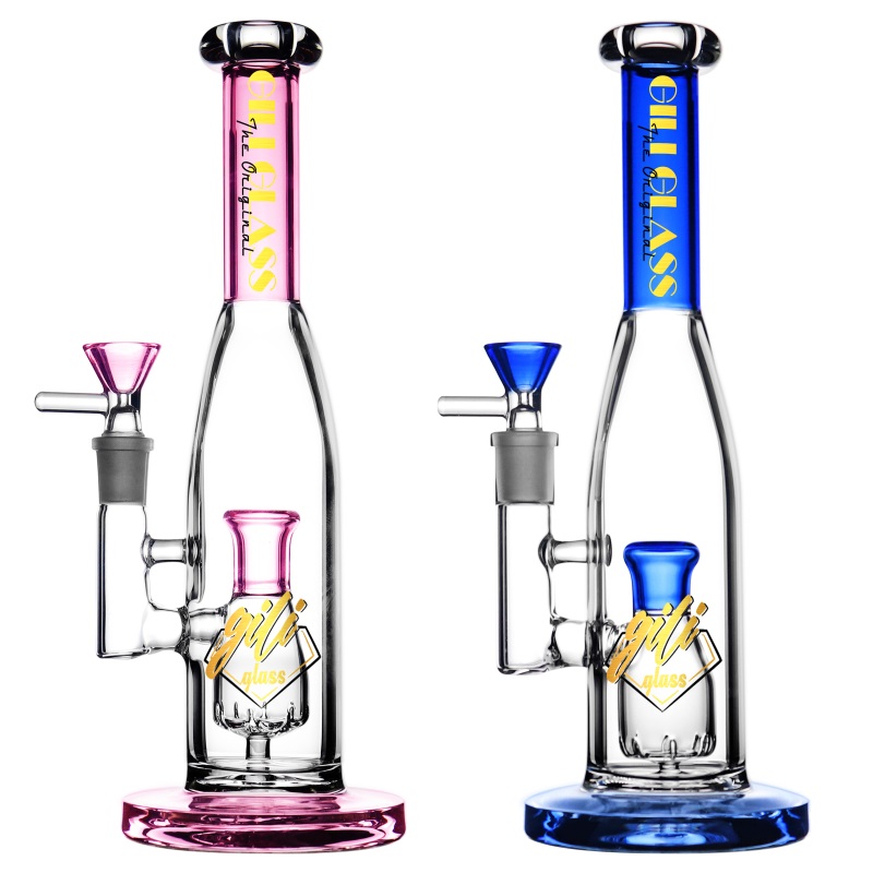 | Height: 10″ Glass tube: 5mm Weight:435g Joint: 14F Colors:blue,teel,pink,amber,gery |