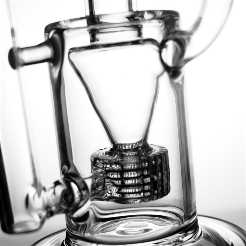 | Recycler Bong Height: 12″ Glass tube: 5mm Weight: 730g Joint: 14F Colors:blue,milkyblue,pink,green Package:28pcs/ctn |